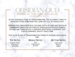 Obsidian Oud is perfect for those who are drawn to mystery, depth, and quiet power. Its dark, resinous profile is ideal for individuals who prefer their presence to be felt rather than announced — leaving a trail that lingers in memory. Opening with the warm spice of cardamom, unfolding into a heart of rare oud and creamy sandalwood, and settling into a velvety base of tonka and amber, Obsidian Oud is crafted for those who embrace transformation and thrive in the shadows.